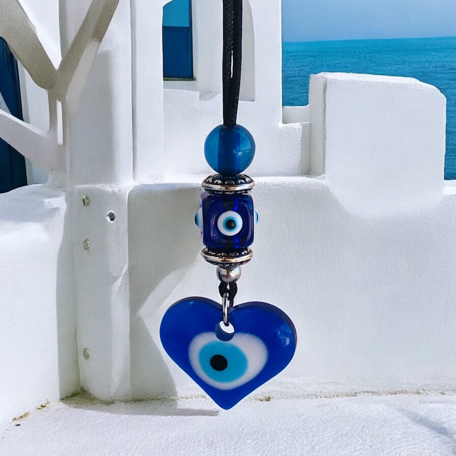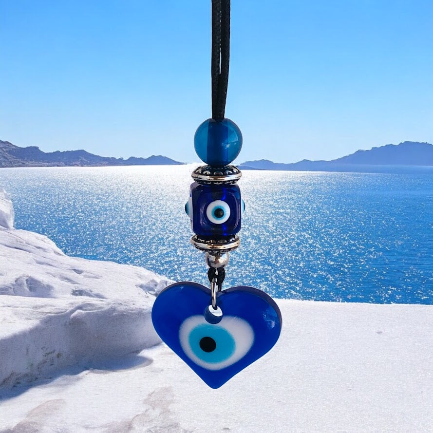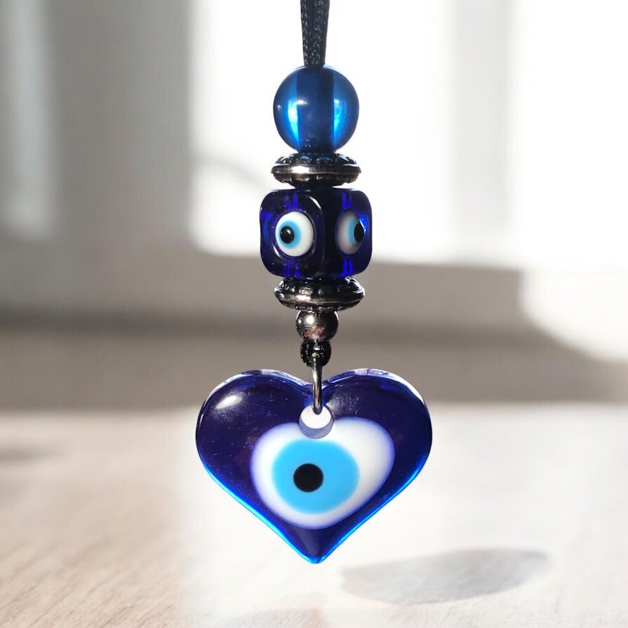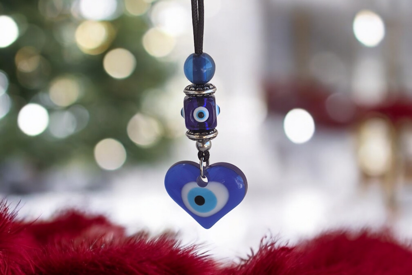 Heart Evil Eye Rearview Charm - Car Protection - New Driver Charm