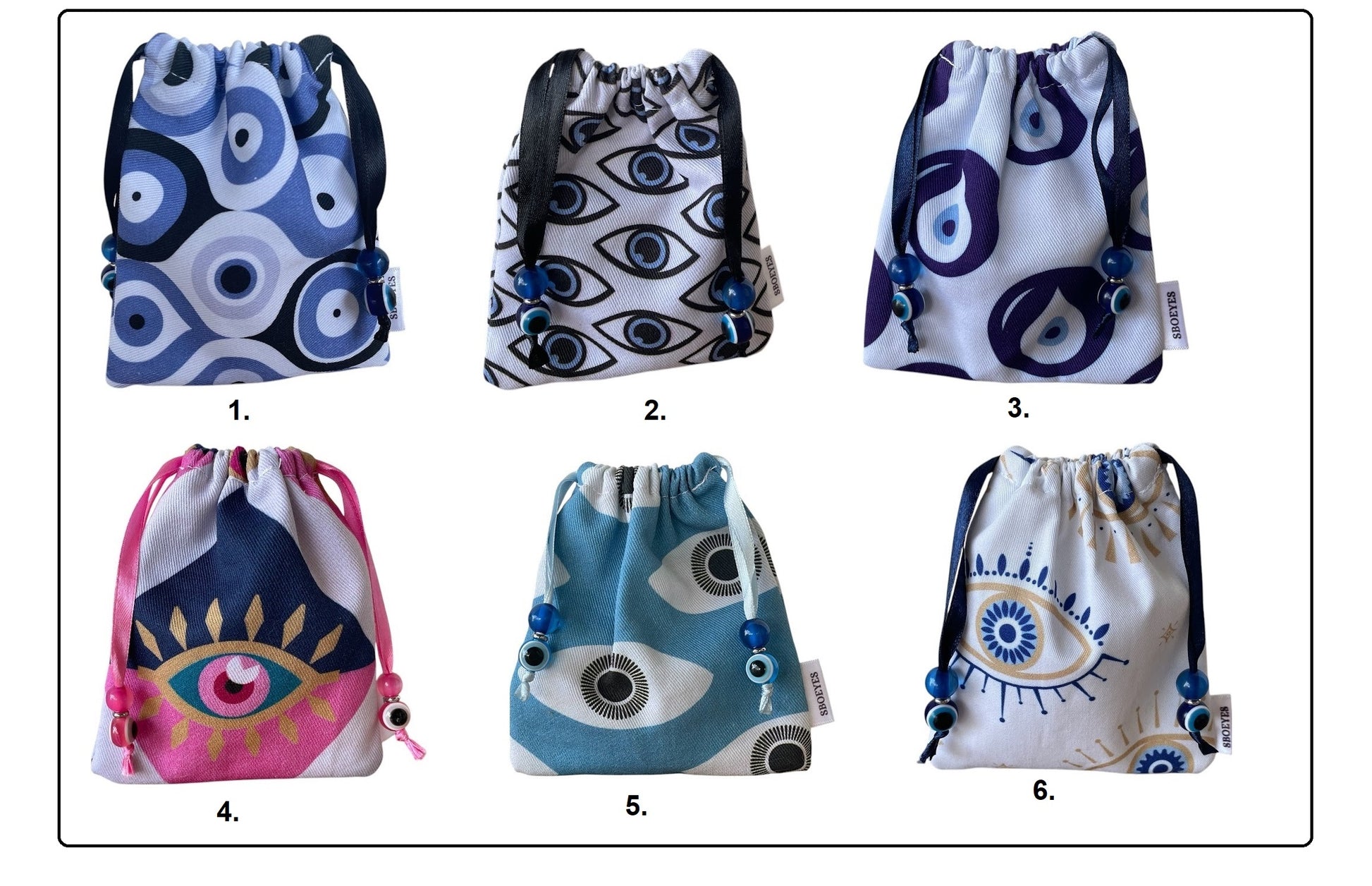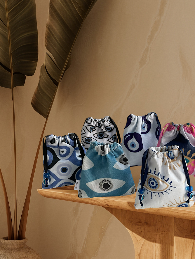 🧿 Evil Eye Drawstring Bags – Available in 6 Designs