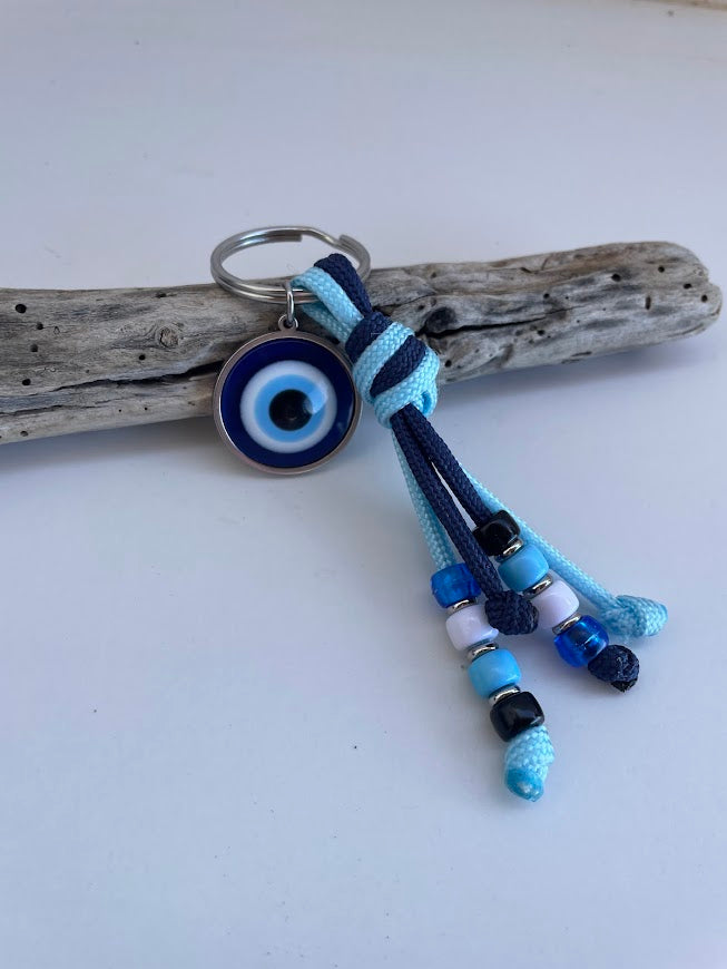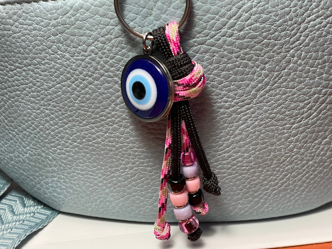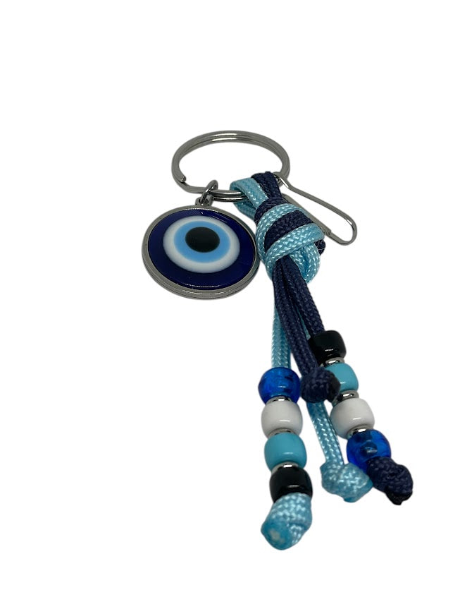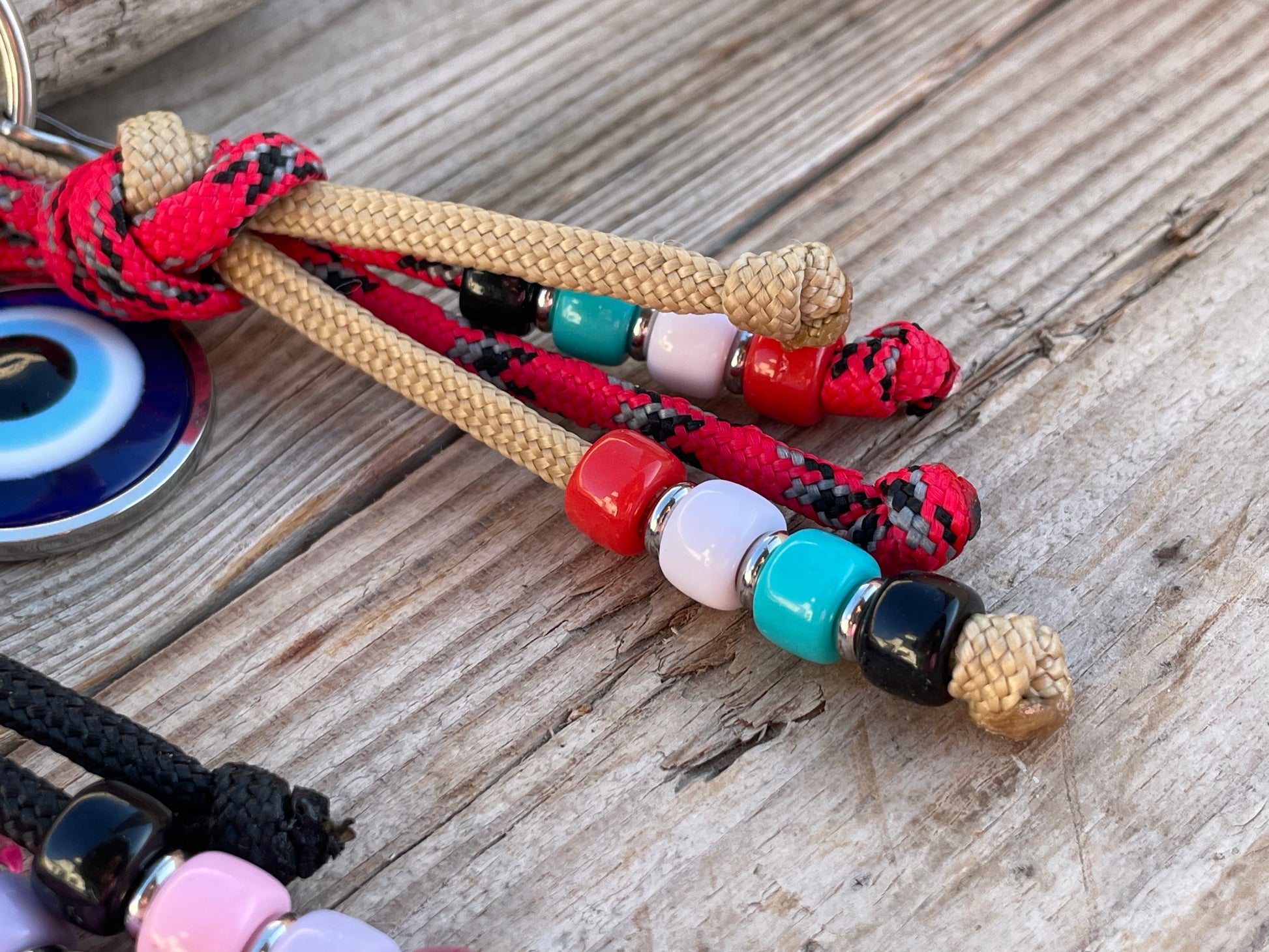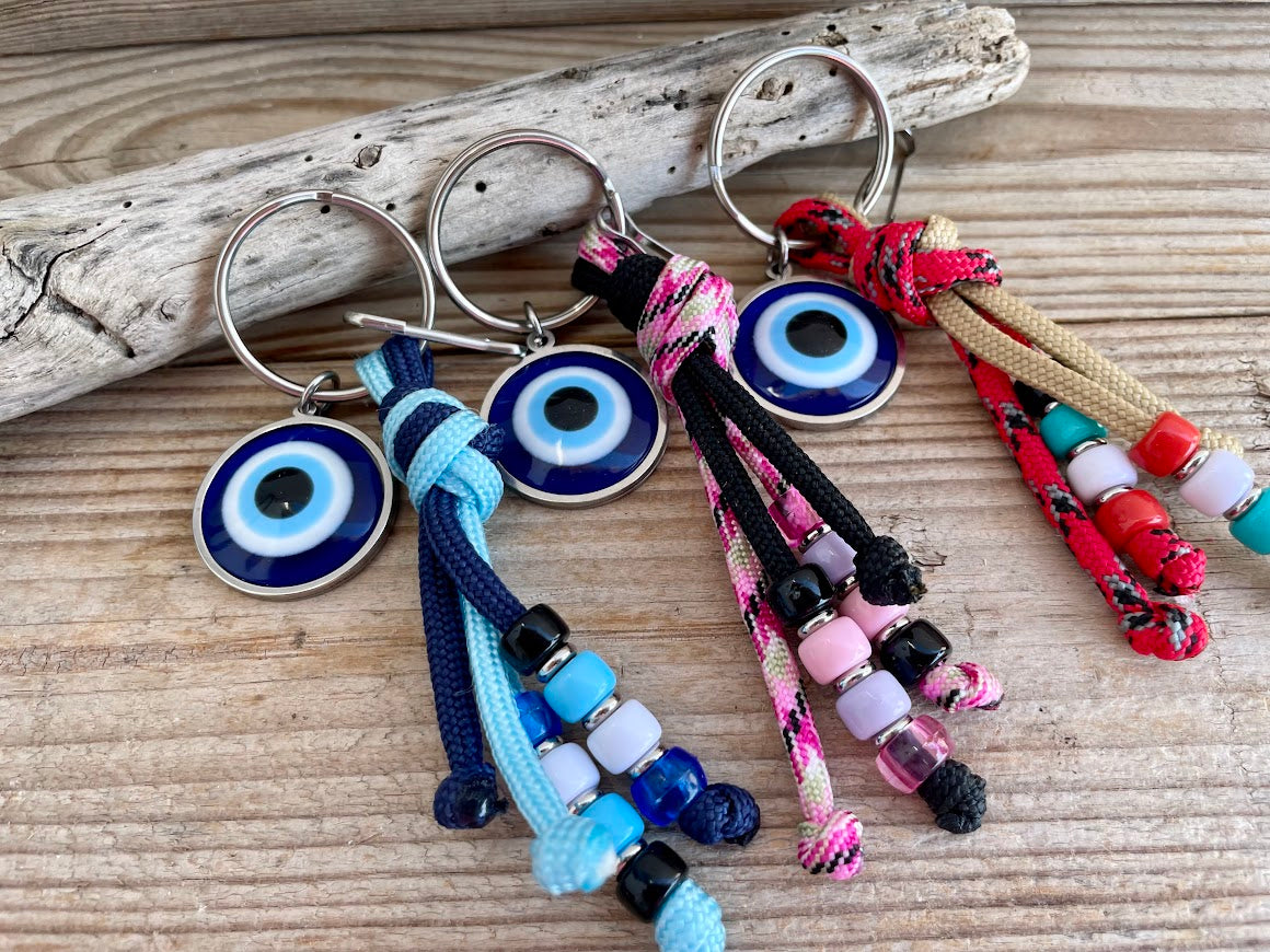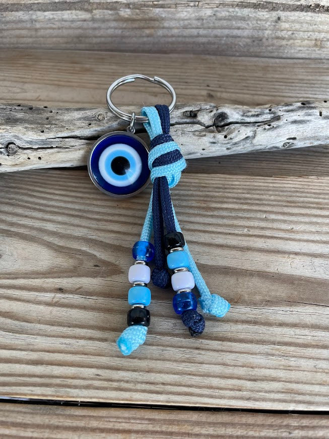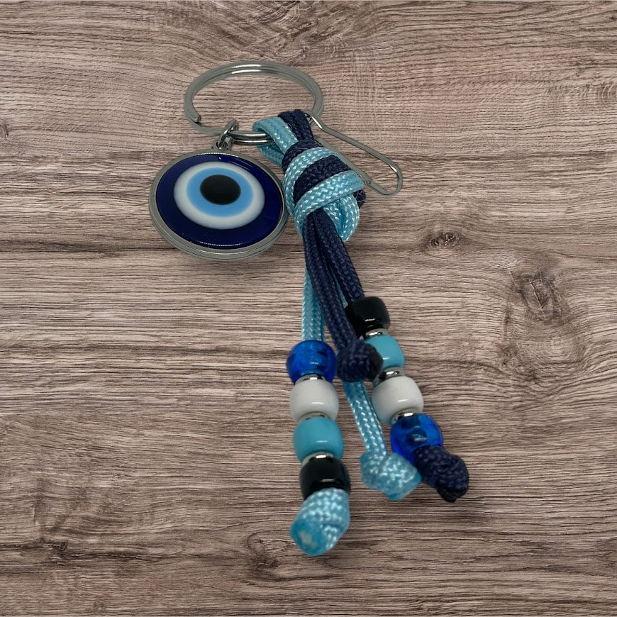 Handmade Blue Evil Eye Keychain – Paracord Charm with Beads | Bag Accessory | Lucky Amulet | Gift Idea
