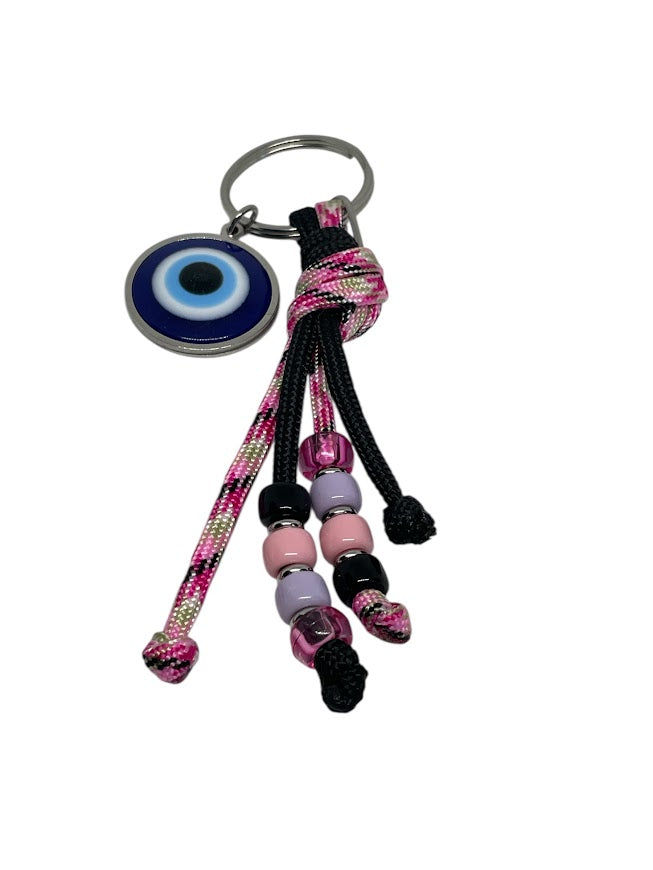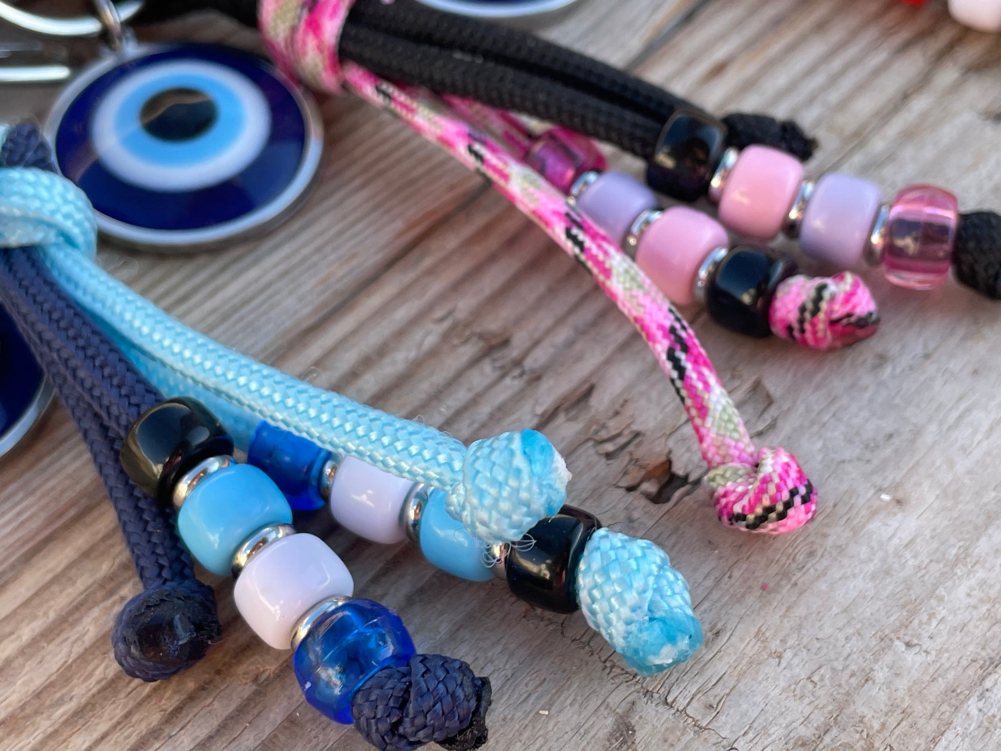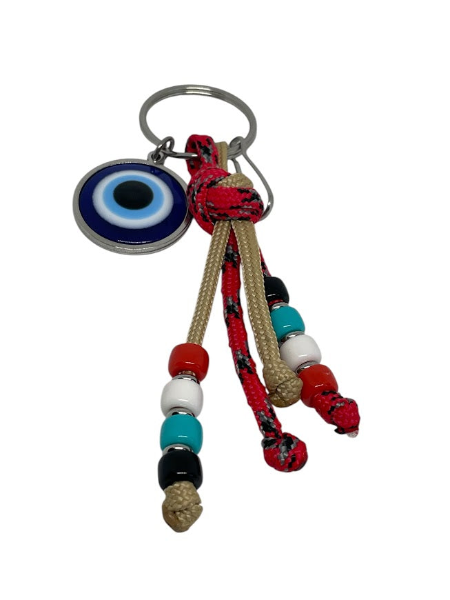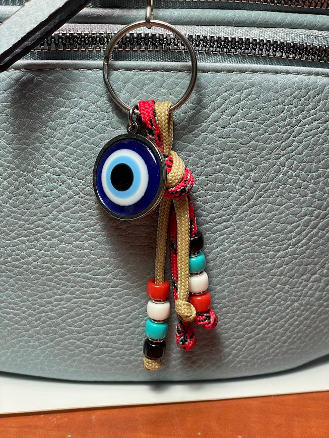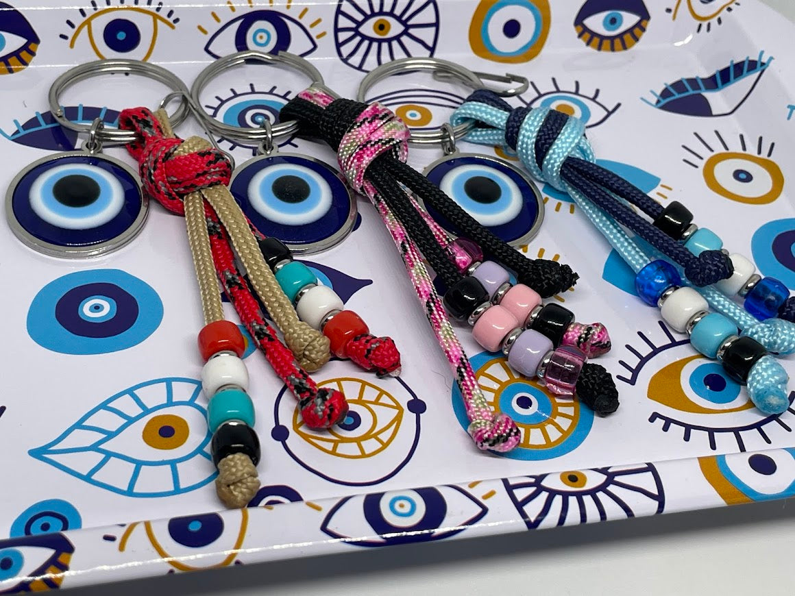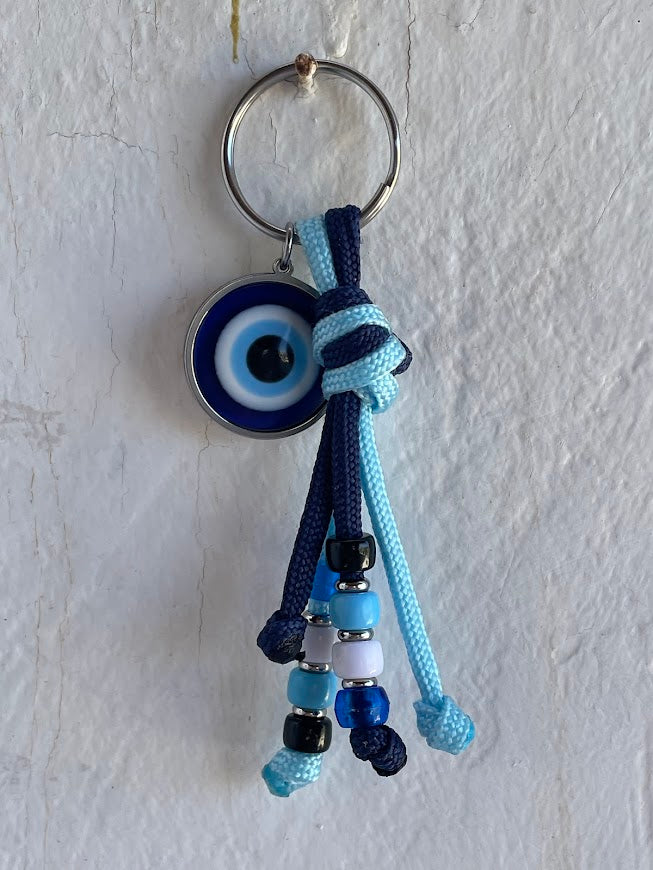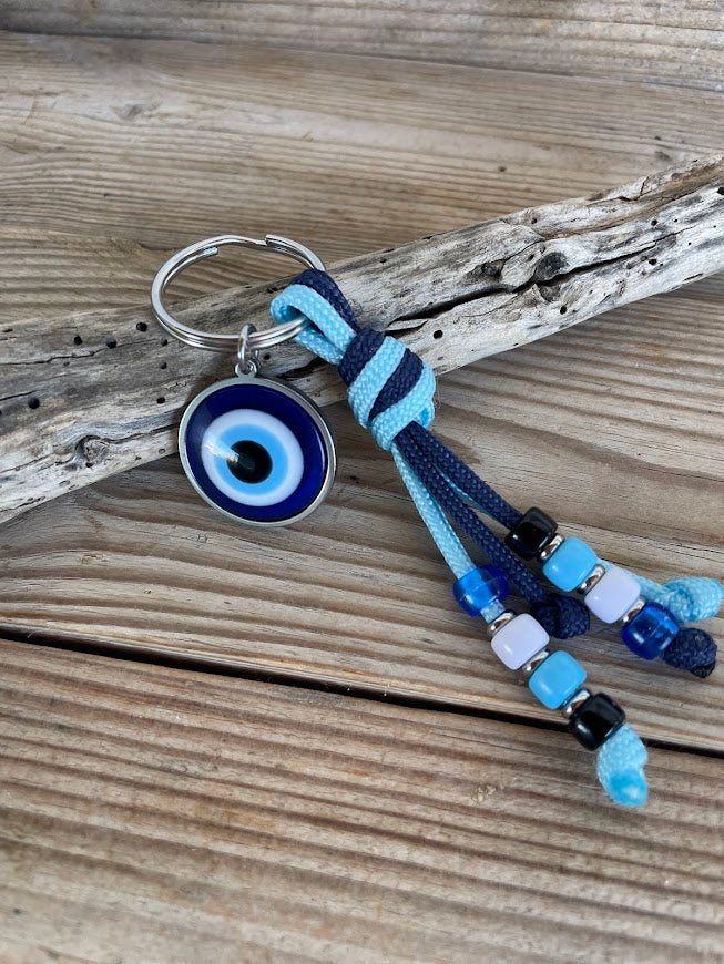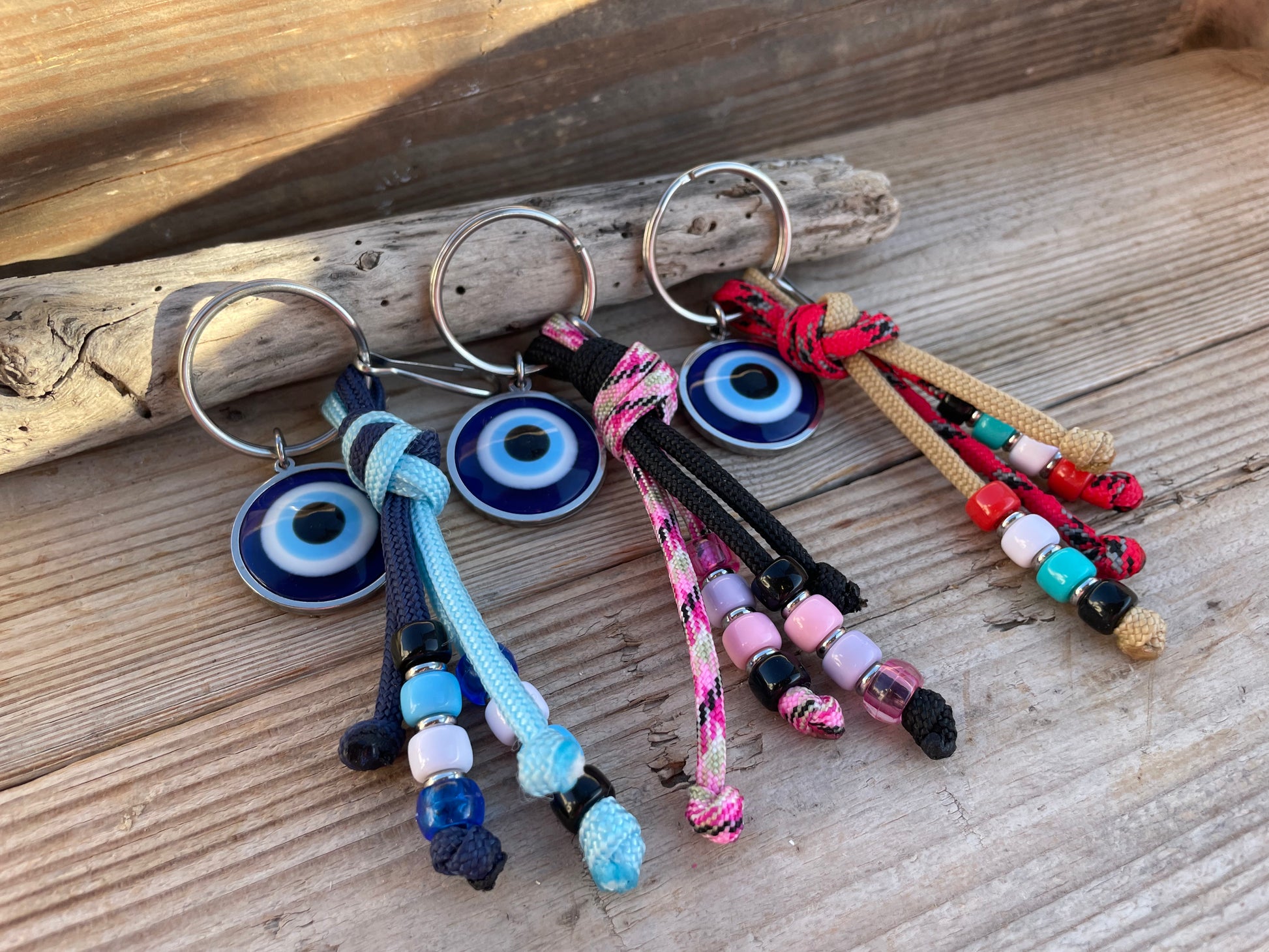 Handmade Blue Evil Eye Keychain – Paracord Charm with Beads | Bag Accessory | Lucky Amulet | Gift Idea