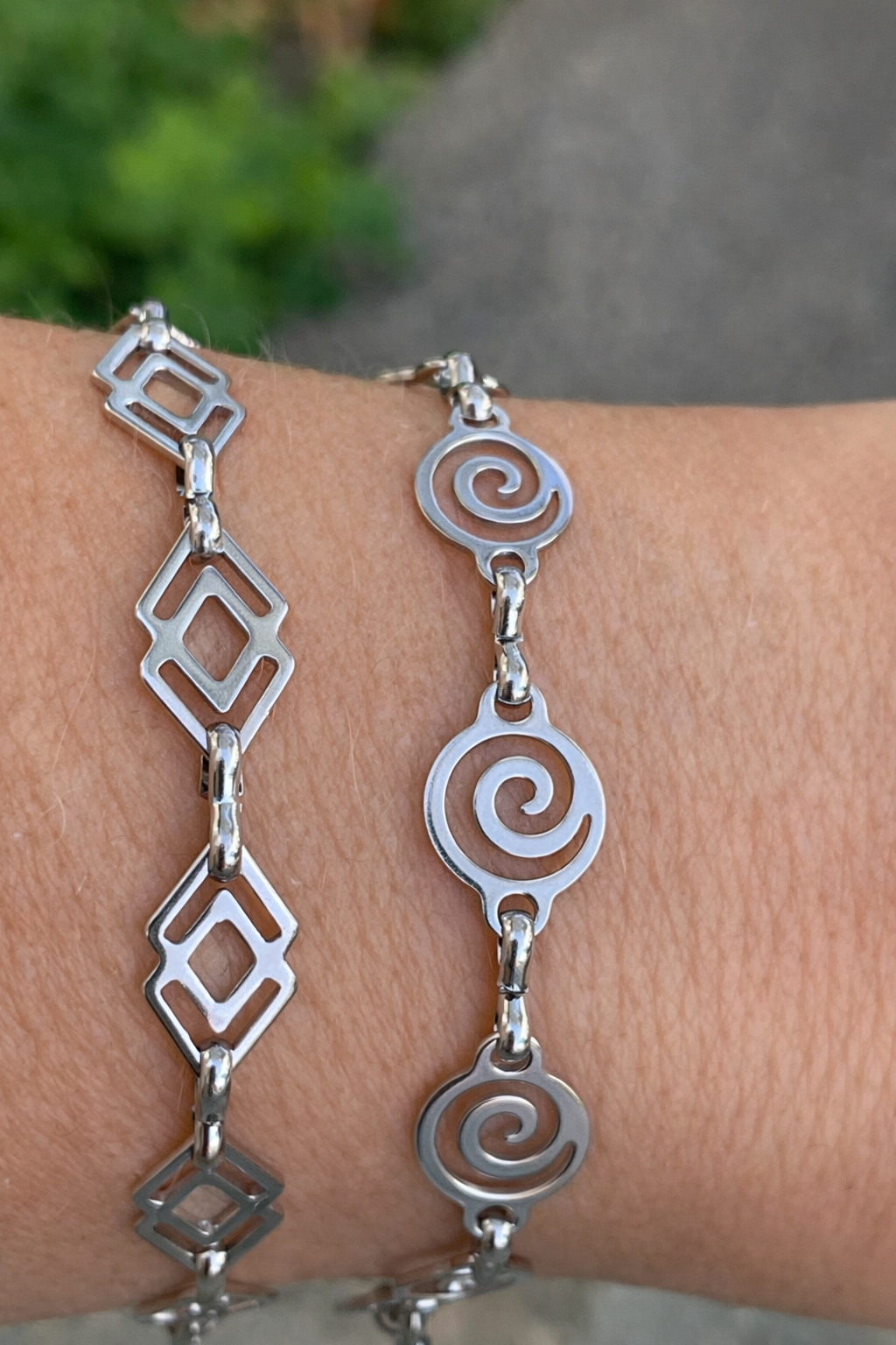 Stainless Steel Spiral & Rhombus Bracelet – Waterproof Adjustable Women Jewelry