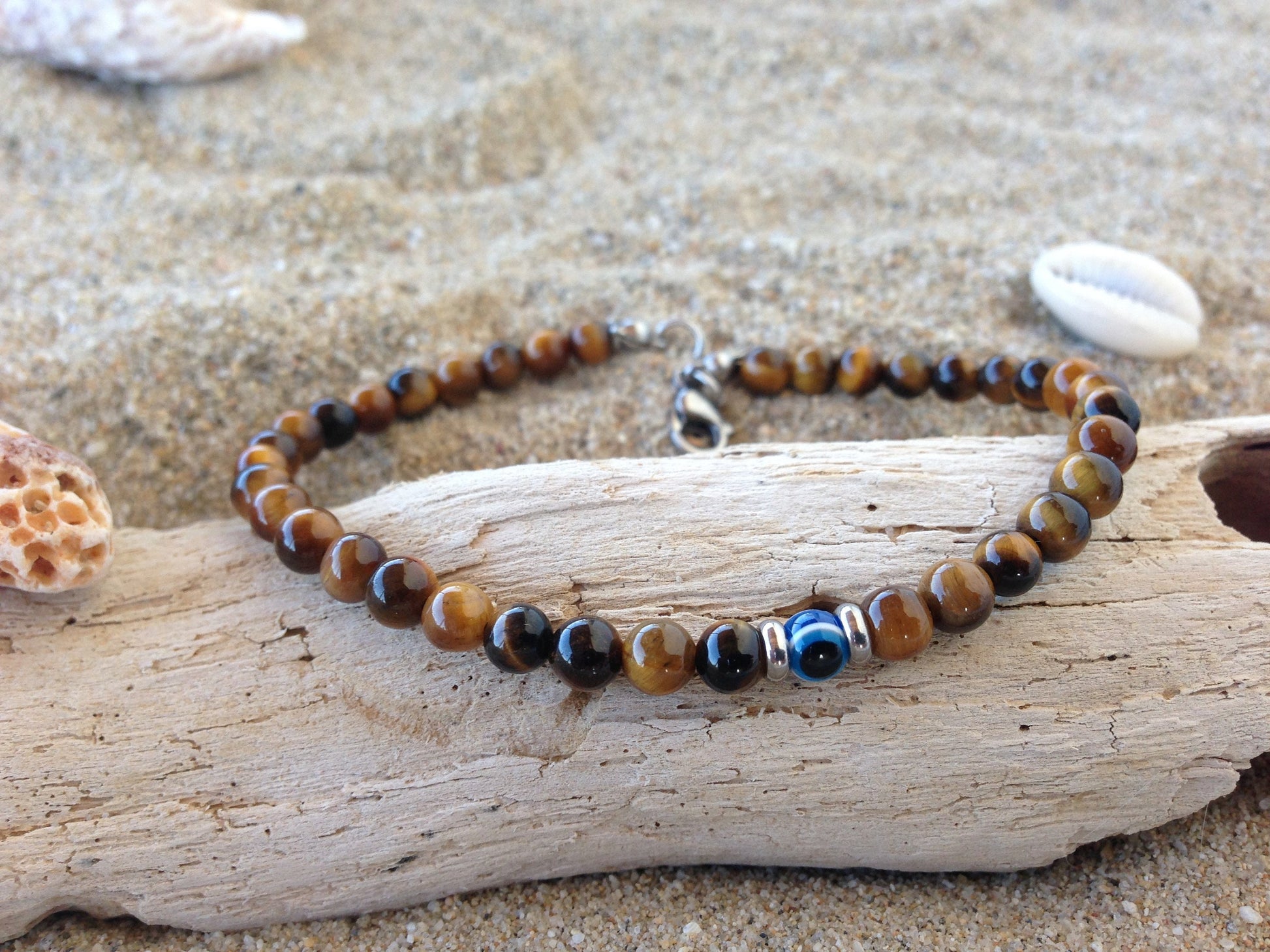 Tiny Men's Evil Eye Tiger Bracelet | Greek Protection Jewelry