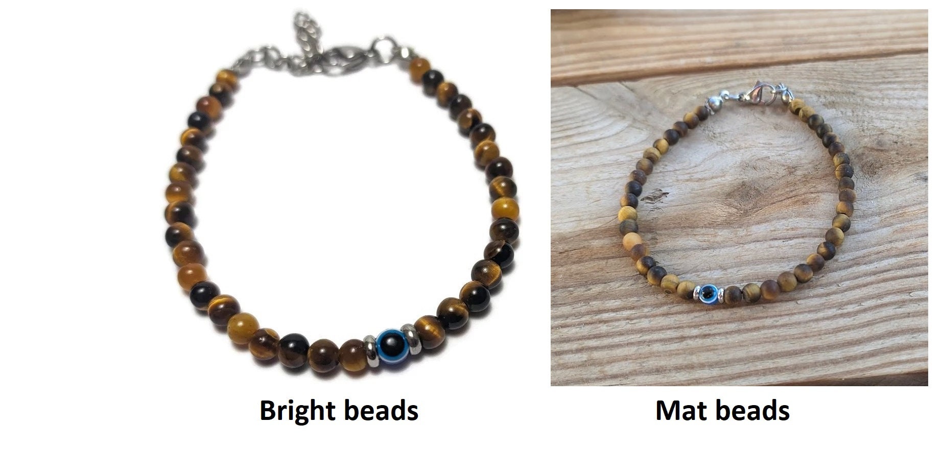 Crafted with meticulous attention to detail, this bracelet incorporates stainless steel spacer beads, 4mm tiny tiger eye beads available in bright or matte colors, and a 4mm dark blue evil eye bead. Secured with a closure and clasp made of durable stainless steel, this accessory combines style with durability.